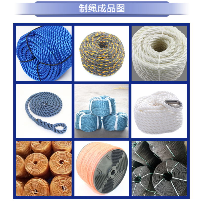 是我廠為節(jié)約能源提高制繩效率,增加制繩廠家經(jīng)濟(jì)效益而開發(fā)的一種成繩機(jī)。是一種集制股與成繩為一體,在一次連續(xù)操作下制成φ3-φ30mm的成品繩,從而大大提高生產(chǎn)效率。減少了制股到制繩的工作程序,無廢絲、廢料產(chǎn)生,而且所制繩索更加美觀耐用。該機(jī)與其他繩機(jī)比較節(jié)約材料30%、能源20%,勞動生產(chǎn)效率提高35%,節(jié)約制繩成本20%,每噸繩可為制繩廠家節(jié)約50%勞動力,同時具有結(jié)構(gòu)緊湊,性能穩(wěn)定,無噪音,無污染,制動快,安全可靠等優(yōu)點,是一種具有明顯經(jīng)濟(jì)及社會效益產(chǎn)品,為節(jié)約能源提供了新途徑。該設(shè)備內(nèi)置的自動排繩器,可使盤繩有序的自動排繩成盤,計米器可按生產(chǎn)要求隨意增減制繩長度,重量在到達(dá)用戶指定數(shù)值可自動停機(jī)。