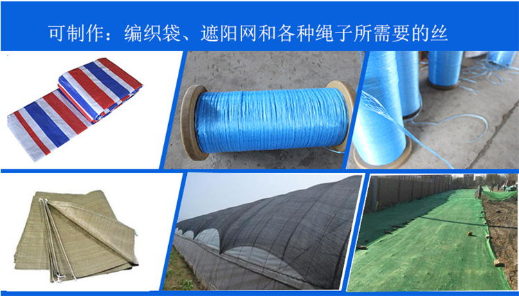 扁絲拉絲機(jī) 該生產(chǎn)線是以聚丙烯(PP)、聚乙烯(HDPE)為原料制成的各種噸袋、編織袋、遮陽網(wǎng)、蓋土網(wǎng)、繩子等用絲。